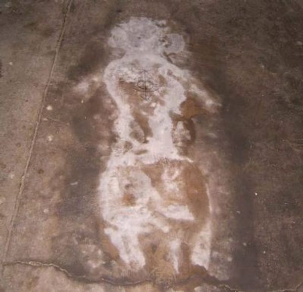 This silhouette of patient Margaret Shilling's body yet remains where she was found in 1979.
